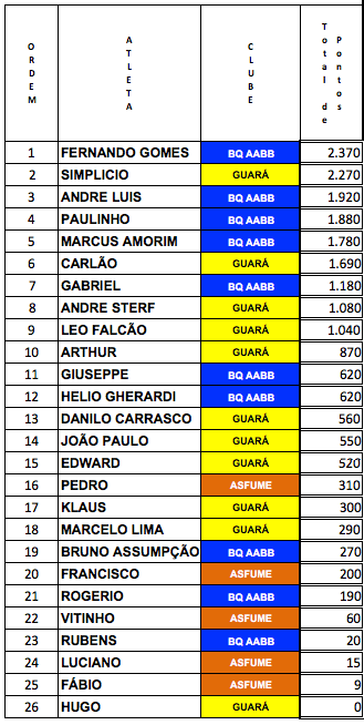 SIMPLÍCIO (GUARA)- VICE CAMPEAO, FERNANDO (BQ) CAMPEÃO E ANDRÉ LUÍS (BQ) – 3ºLUGAR