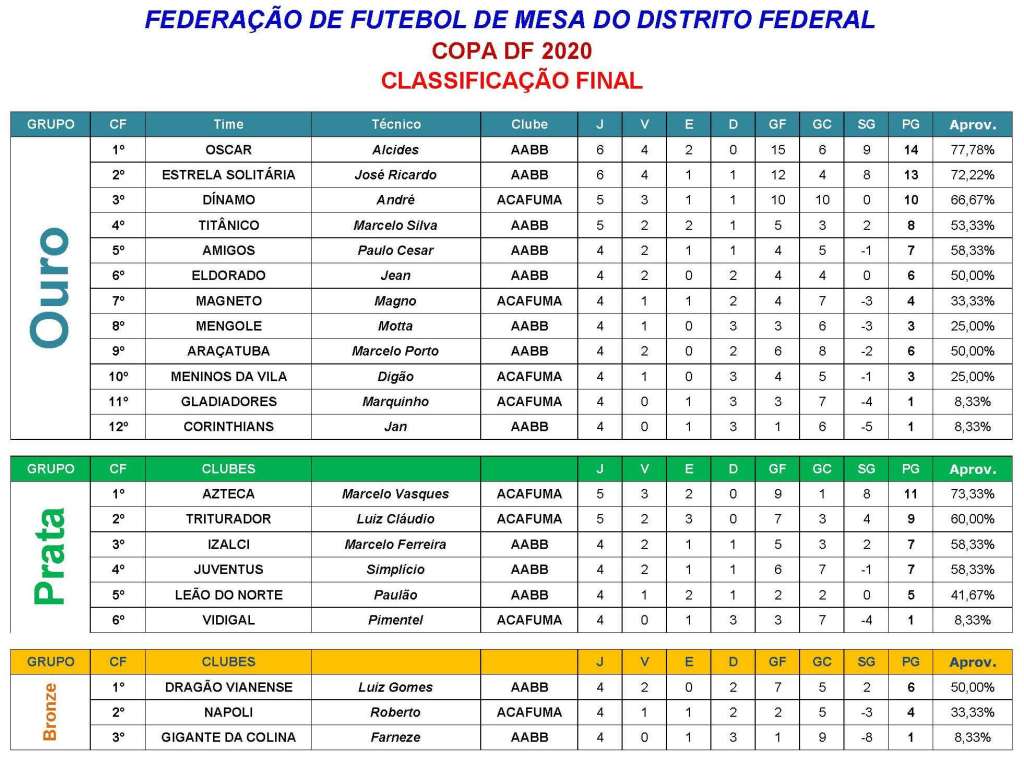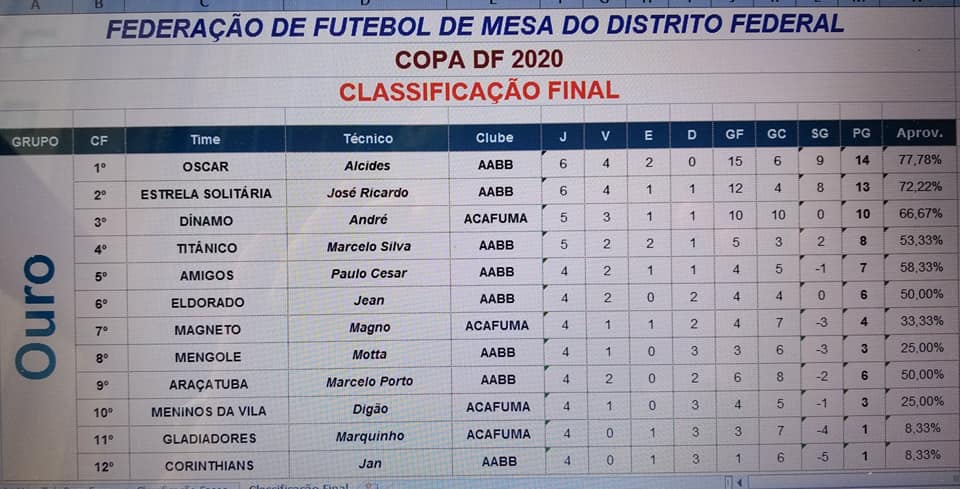 O Ano de 2020 teve todas as modalidades de Futmesa no DF sem encerramento devido a Pandemia COVID-19.