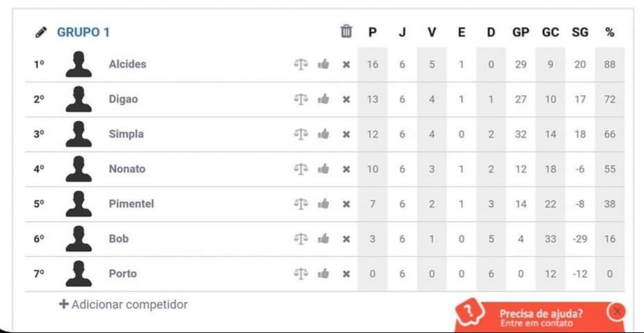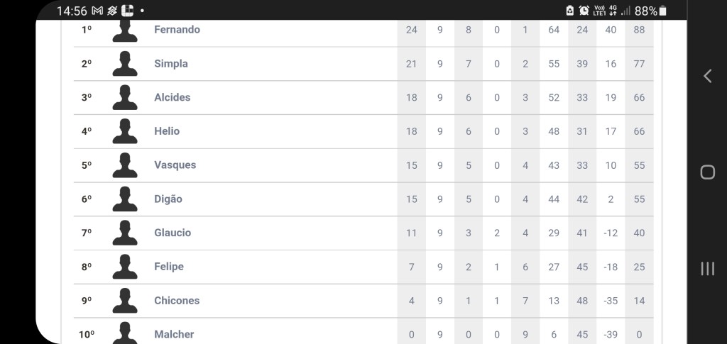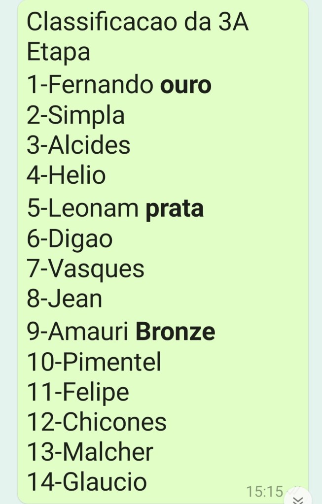 Faltando 3 rodadas Fernando e Alcides tinham 15 pontos, Digao, Vasques, Simpla e Helio com 12 corriam por fora.