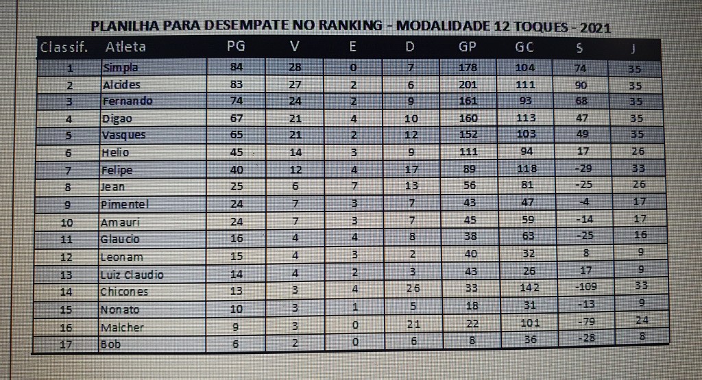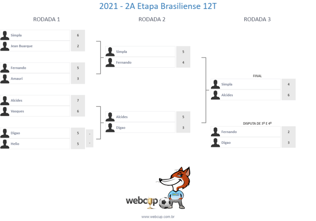 Nas contas do ranking, Alcides e Simpla empataram com 570 pontos e na campanha geral do ano, Simpla fez um Ponto Ganho a mais (84 contra 83) e levou o caneco de Campeao Brasiliense 2021.
