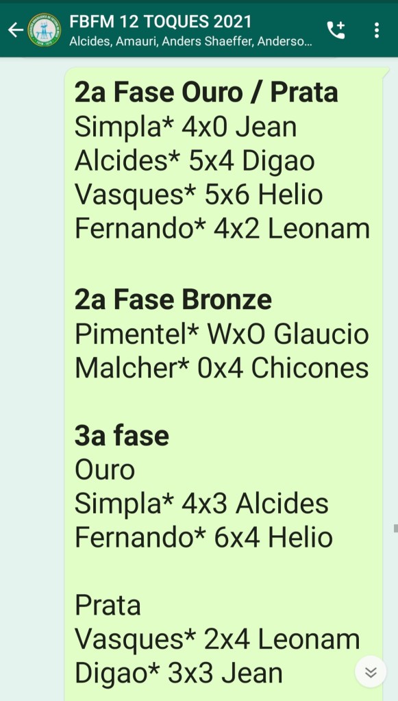 Neste sabado, 06/02/2021, 20 técnicos em 5 grupos de 4 atletas decidiram a Copa DF na sede da AABB-DF.Num dia chuvoso, as disputas acirradas entre os técnicos definiram os integrantes da Serie Ouro, Prata e Bronze. Na final da Bronze, o Invictus (Marcio) fez 2×0 no Dragão Vianense de Luiz Gomes e levou o caneco. Na Prata, O Dínamo de André Brandão venceu o Maquina Negra de Luiz Claudio por 1×0. Na Ouro, Tarcizio com o Centenário levou o troféu ao vencer Adolpho do Cavalo de Troia por 2×0.Ainda tivemos a final do Aspirantes onde Jackson, mesmo sem vantagem, venceu Rodrigo por 2×1, levando seu primeiro caneco na modalidade 3 Toques. Agradecemos a AABB em especial ao DT Alcides que coordenou os trabalhos.