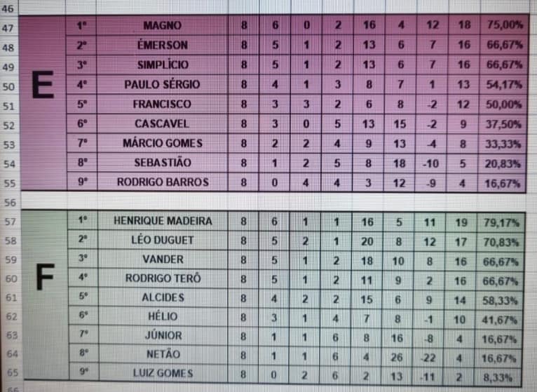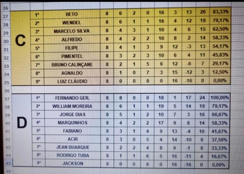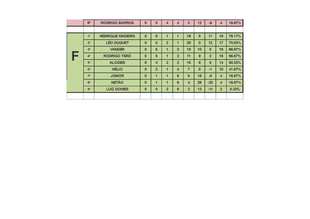 Na ultima rodada, Fernando fechou a Etapa lider e campeao com 24 pontos fazendo 8×5 em Vasques e notaveis 64 gols em 9 jogos !!