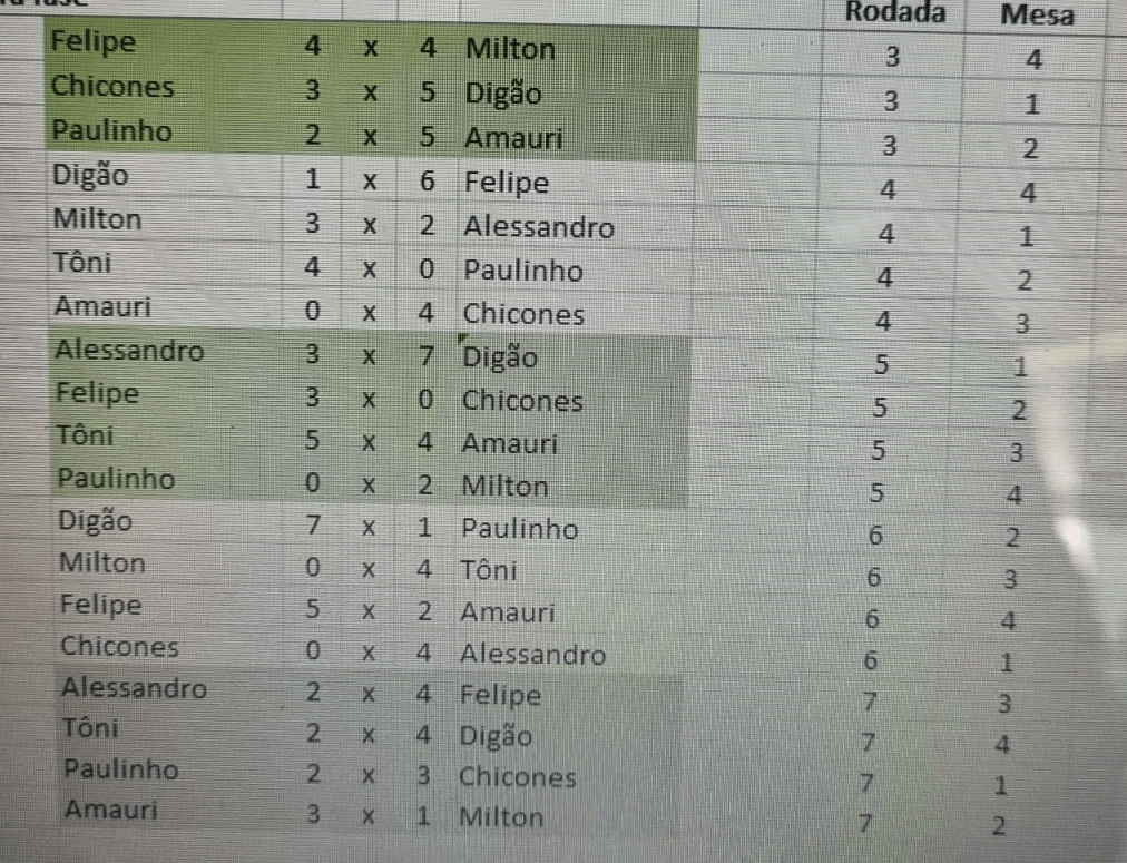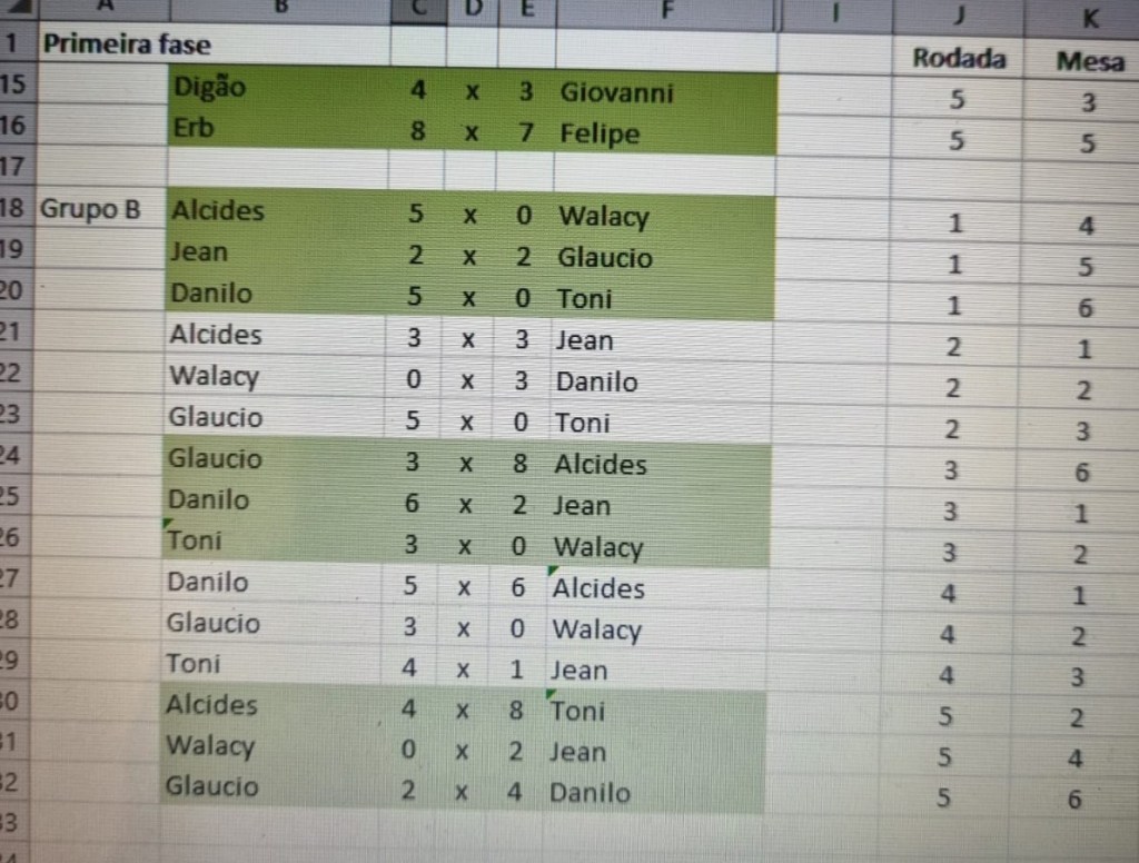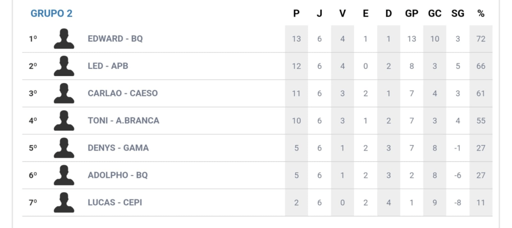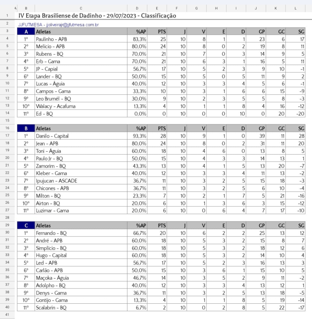 Neste sabado, 29/07, na sede da AABB – Bola Quadrada, 33 atletas em 3 grupos de 11 fizeram parte da Etapa com recorde de inscritos. No grupo A, Paulinho e Melicio da Portuguesa e Rubens do Bola Quadrada se classificaram. No grupo B, Danilo, agora no Capital e Jean da Portuguesa se classificaram. No grupo C, Fernando do BQ, Andre da Portuguesa e Simpla do BQ pegaram as vagas.Nas final, Danilo precisava do empate mas Andre fez 3×1 e levou o caneco. Parabens. Agradecemos o fair play de todo o evento e a AABB pela parceria de sempre.