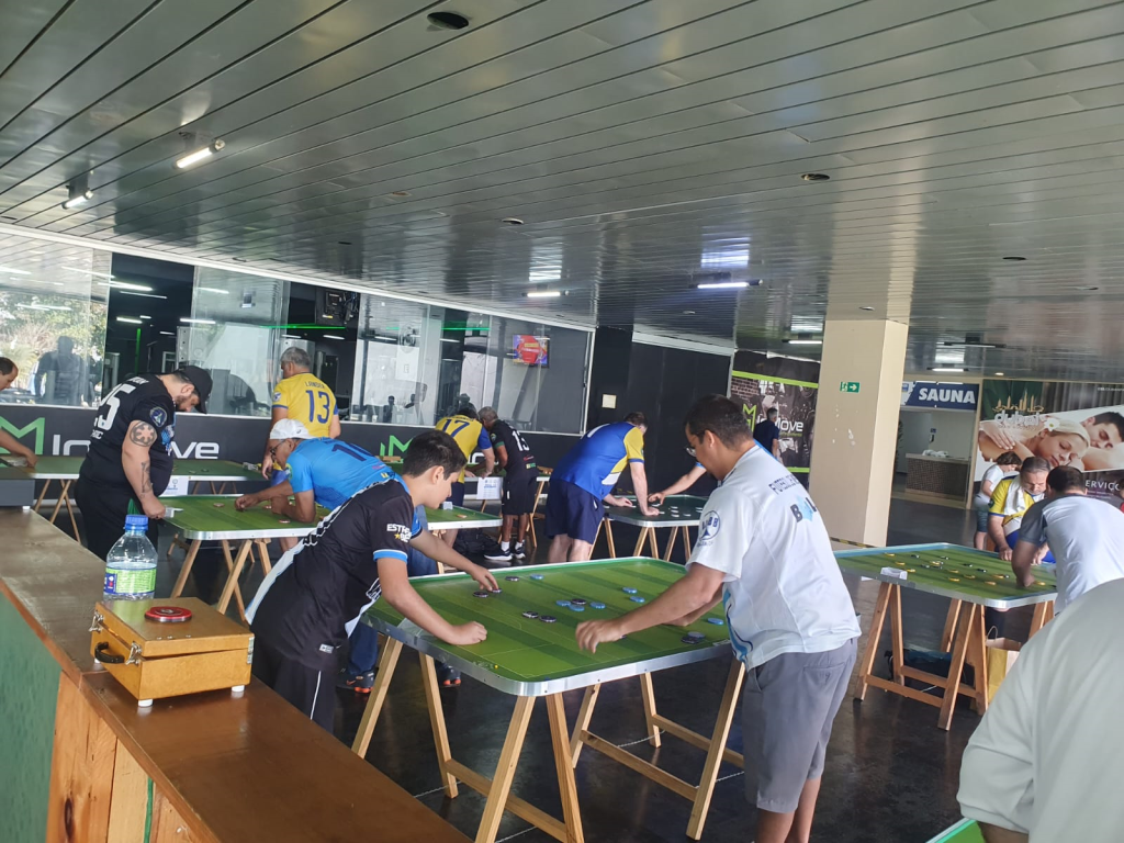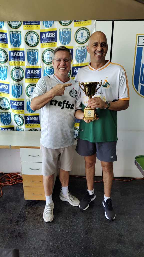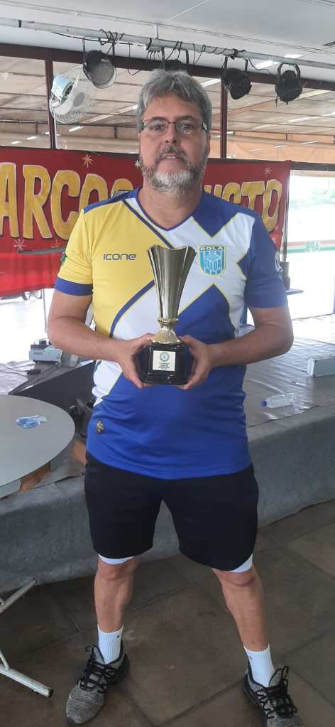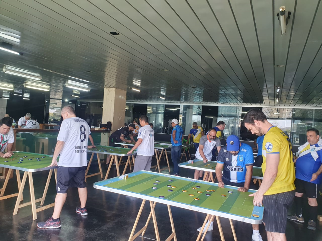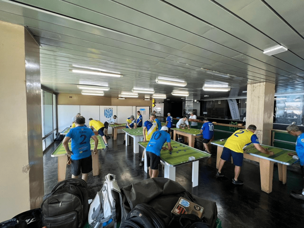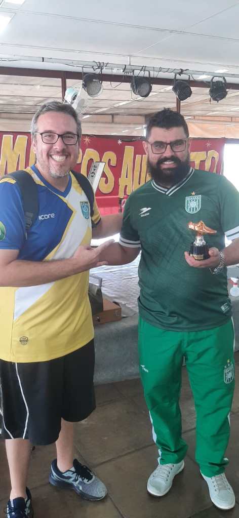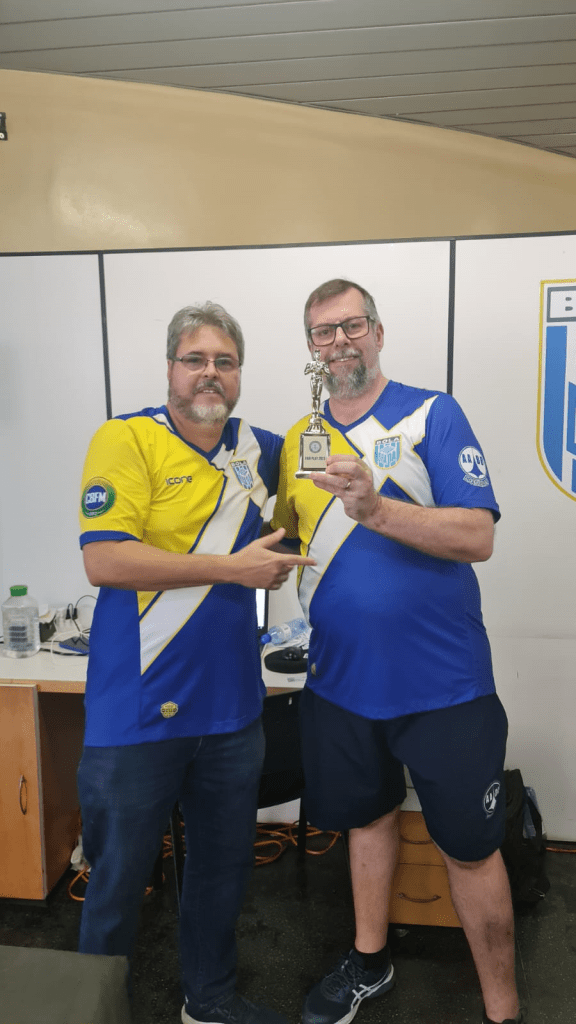 Neste final de semana, 36 tecnicos disputaram o titulo de Campeao da Centro-Oeste 2023, na modalidade 3 toques. Eram 6 grupos de 6, classificando 18, o restante indo para Prata e Bronze. Na Bronze, Aecio x Marcelo Ferreira empataram em 1×1, dando titulo ao Aecio, o 1° trofeu da nova versao da equipe da Ocidental. Na Prata, Pimentel 2×1 Jose Luis, deu o titulo ao botonista mais experiente do DF. Na ouro, Alcides 1×1 Duguet deu o tricampeao ao botonista do DF. Parabens a todos os botonistas pelo fair play e a AABB o agradecimento pela parceria de sempre.