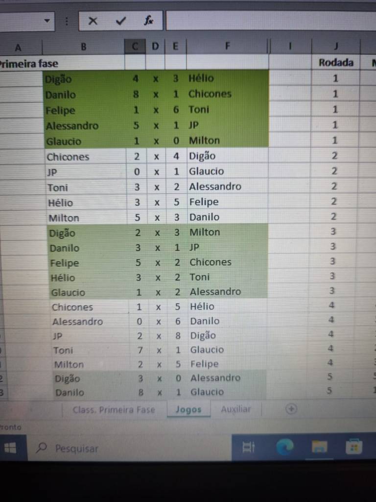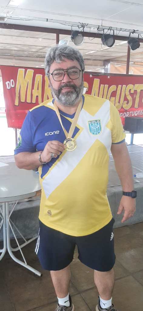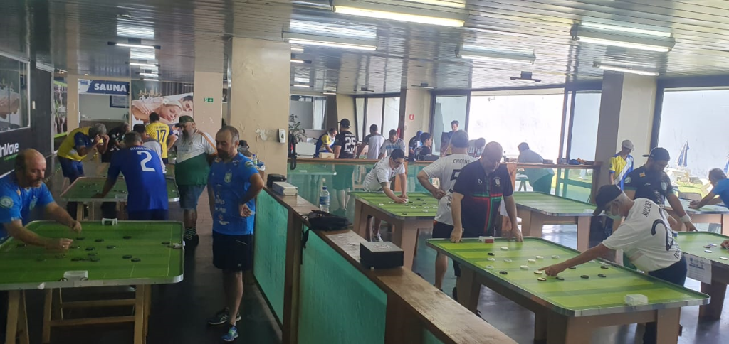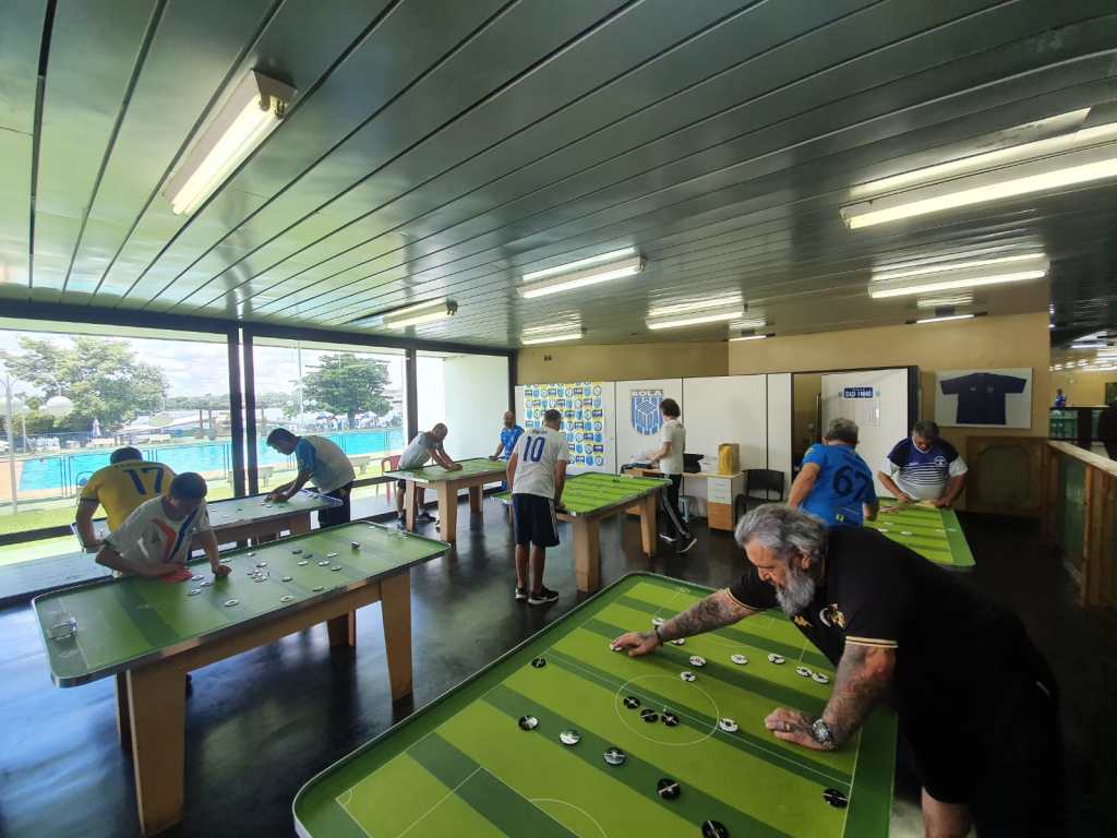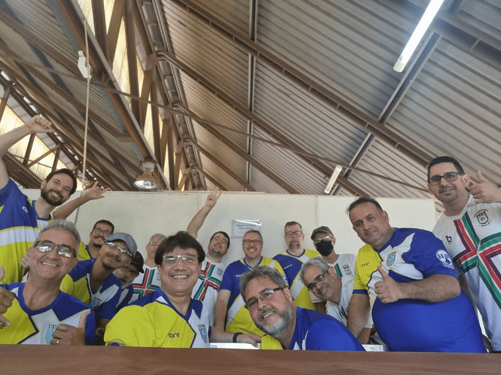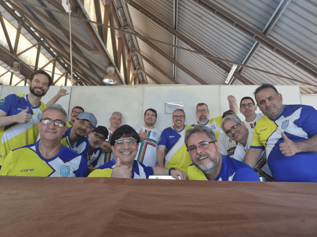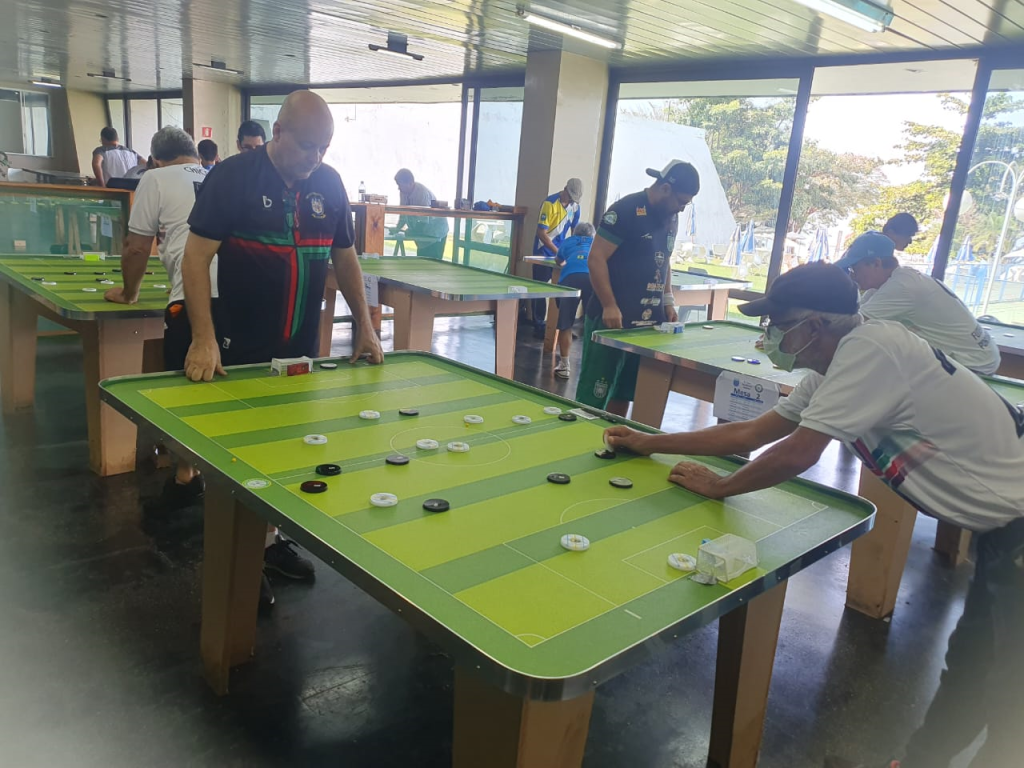Neste final de semana, 36 tecnicos disputaram o titulo de Campeao da Centro-Oeste 2023, na modalidade 3 toques. Eram 6 grupos de 6, classificando 18, o restante indo para Prata e Bronze. Na Bronze, Aecio x Marcelo Ferreira empataram em 1×1, dando titulo ao Aecio, o 1° trofeu da nova versao da equipe da Ocidental. Na Prata, Pimentel 2×1 Jose Luis, deu o titulo ao botonista mais experiente do DF. Na ouro, Alcides 1×1 Duguet deu o tricampeao ao botonista do DF. Parabens a todos os botonistas pelo fair play e a AABB o agradecimento pela parceria de sempre.