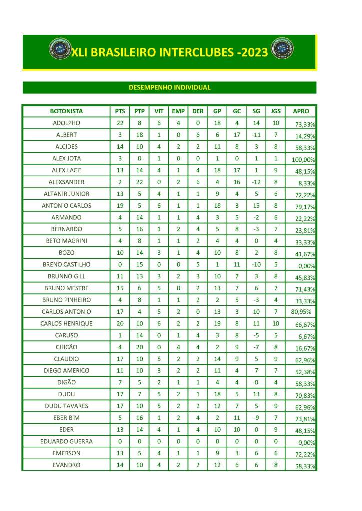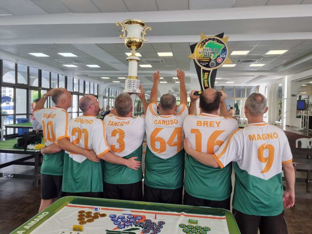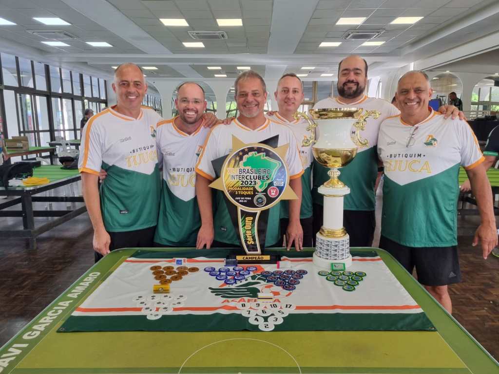 3 Toques. Foi realizado nos dias 21 a 23/04/2023, na cidade de Juiz de Fora (MG), o XLI Campeonato Brasileiro Interclubes da modalidade Bola 3 Toques. As 16 (dezesseis) equipes participantes, divididas na primeira fase em dois grupos, deram um show de técnica, habilidade e controle emocional, protagonizando momentos que ficarão na memória de todos os presentes. Ao final da primeira fase, pelo Grupo A, classificaram-se, na ordem, Liberdade “A” (MG), ACAFUMA (DF), Tupi “B” (MG) e Uberaba SC (MG). Já pelo Grupo B, a equipe do Flamengo obteve 100% de aproveitamento e a melhor campanha da primeira fase, vencendo os 7 confrontos disputados. Em segundo ficou a equipe do Tupi “A”, seguida por AABB-DF e ADMB “A” (MG). As demais equipes participantes se credenciaram a disputar a Taça de Prata da competição. Definidas por meio do denominado “cruzamento olímpico” e contando com a vantagem do empate as equipes que obtiveram a melhor classificação na primeira fase, as quartas de final do Campeonato Brasileiro restaram assim concluídas (empate das equipes na coluna da esquerda): Liberdade “A” 3 x 0 ADMB “A”; ACAFUMA 2 x 1 AABB-DF; Flamengo 2 x 2 Uberaba SC; Tupi “A” 3 x 1 Tupi “B”. Destaque para os clássicos mineiros e do DF, além da emocionante classificação do