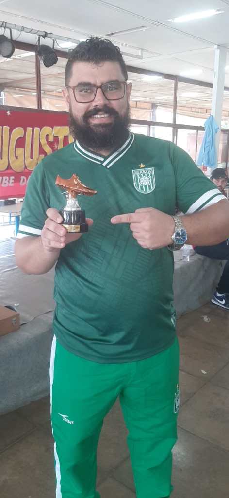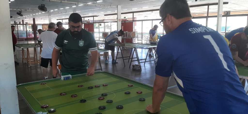 Após 6 etapas ao longo do ano de 2023, diversas fases, gols e mais gols, a modalidade dadinho conheceu seus campeões. Mesmo sem jogar, usando seu descarte, Simplício da AABB/BQ sagrou-se campeão geral, depois de faturar 3 etapas. Aliás, TETRACAMPEÃO! 2018, 2019, 2022 e 2023!!!!!!Neste sábado, na sede da AABB Brasília, a briga foi pela segunda colocação. Ao final da 6ª Etapa, depois de alternar bons jogos, Danilo, do Capital, ficou em 13º, porém o suficiente para ficar com a segunda colocação geral, seguido por Edward, da AABB/BQ, em terceiro lugar.A 6ª Etapa foi vencida por Marcelo Vasques, ACAFUMA, sendo sua primeira participação no ano na modalidade dadinho pela FBFM.O Troféu Fair Play foi para o atleta Milton, AABB/BQ, pelo bom desempenho dentro e fora das 4 linhas, mas principalmente por toda ajuda durante os torneios federados e abertos.A Federação Brasiliense de Futebol de Mesa agradece a todos os botonistas que passaram todo o ano de 2023 disputando belos jogos, com muito dadinho dentro da rede.Parabenizamos também o atleta Simplício pelo belo campeonato disputado.Agradecemos a AABB/DF, SEG Gama e Portuguesa-DF por sediarem as competições ao longo do ano, além da participação dos clubes: ACAFUMA, ASCADE, Águia Branca e Capital.