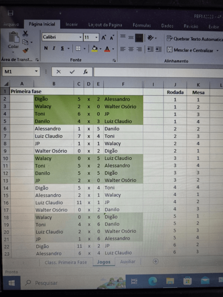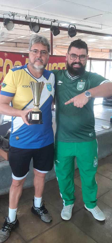 Neste sábado, na sede da AABB, 18 atletas em 6 grupos de 3 disputavam o titulo do 1° torneio oficial FBFM-DF de 2023. Após varias fases e jogos que duraram todo o sábado, na Bronze, o Fantasma do técnico Simpla venceu 1×0 Eldorado de Jean e tornou-se campeão. Na prata, Santos (Caruso) 0x0 Meninos da Vila (Digão) deu o titulo pro irmão santista mais velho Caruso do Santos. Na finalísssima, Amigos (PC) venceu por 2×1 Magneto (Magno) e tornou-se campeão invicto. Parabéns !! Agradecemos a todos os atletas e a AABB pela parceria de sempre. Começamos 2023 com um novo campeão !!