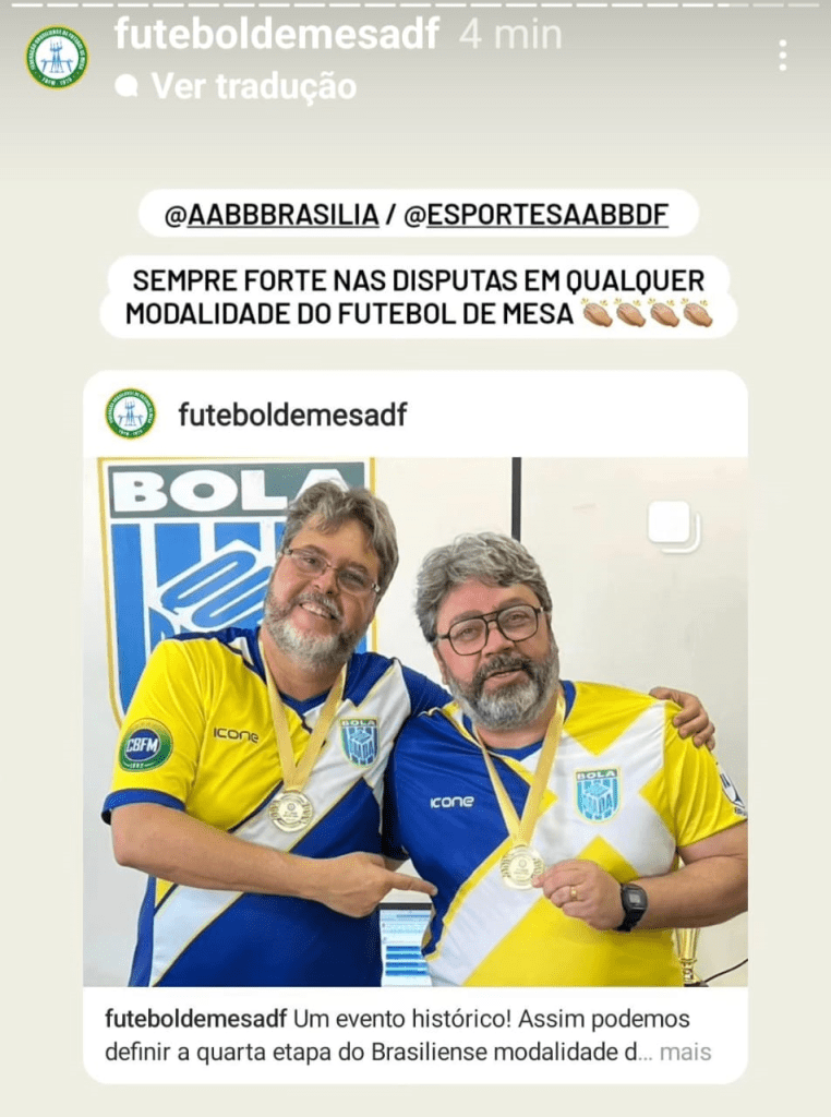 Neste sabado, 27/05/2023, aconteceu a 3ª Etapa Brasiliense de Futmesa Individual, modalidade Dadinho, na Sede da Associação Portuguesa de Brasília. O torneio contou com 21 botonistas de 5 clubes do DF: AABB/BQ, Águia Branca, ASCADE, Gama e Portuguesa sendo que quatro estiveram na serie ouro da Copa do Brasil em Fortaleza. Após a 1ª fase de 3 grupos com 7 atletas, a AABB/BQ fez barba, cabelo e bigode, levando as 3 primeiras colocações da Série Ouro, com o atleta Simplício sagrando-se campeao, Edward em segundo e Fernando em terceiro. Na Série Prata, o atleta da casa, Jean foi o campeão, seguido dos atletas Airton e Paulinho, todos da Portuguesa. Na Série Bronze, o atleta do Gama, Gontijo levou o caneco. A Federação Brasiliense de Futebol de Mesa agradece a todos os atletas pelo fair play e competitividade e agradece a Associação Portuguesa de Brasília pela receptividade em sediar a competição.
