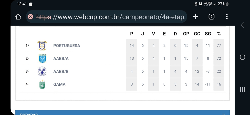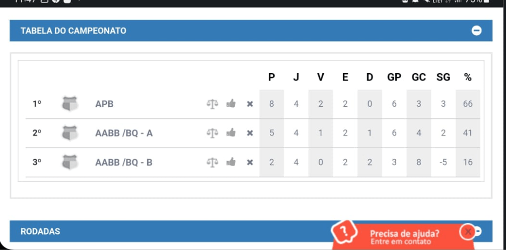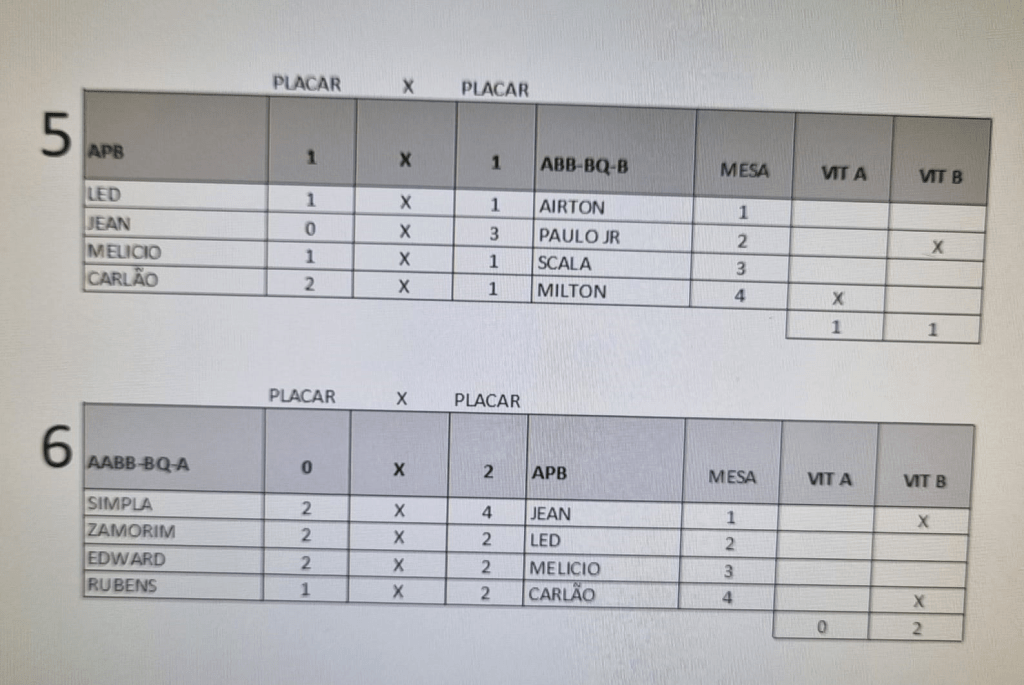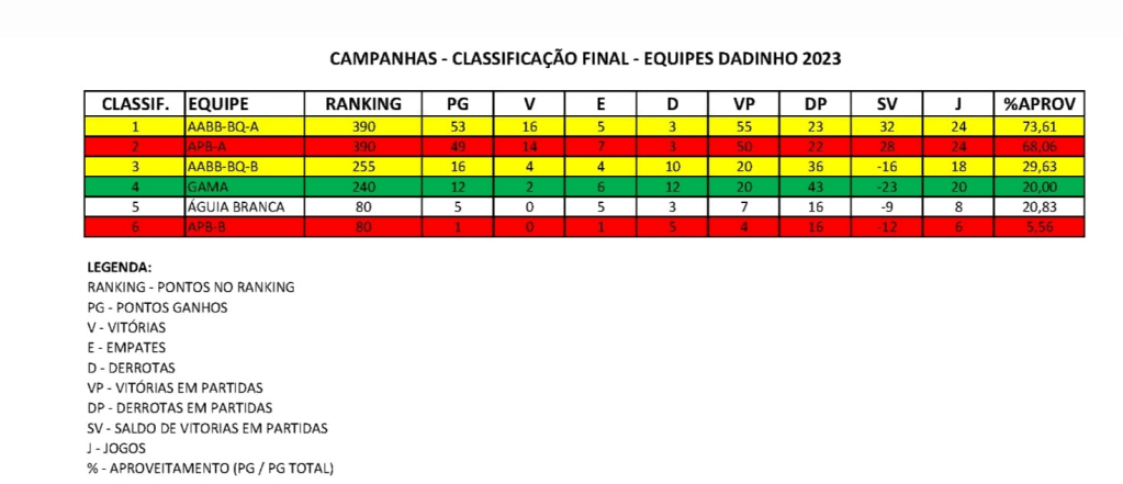 RANKING POR EQUIPES:Soma de duas Etapas 1º- AABB A – 200 PTS;2º- APB A – 190 PTS;3º- GAMA – 160 PTS;4º- AABB B – 85 PTS;5º- AGUIA – 80 PTS;6º- APB B – 80 PTS