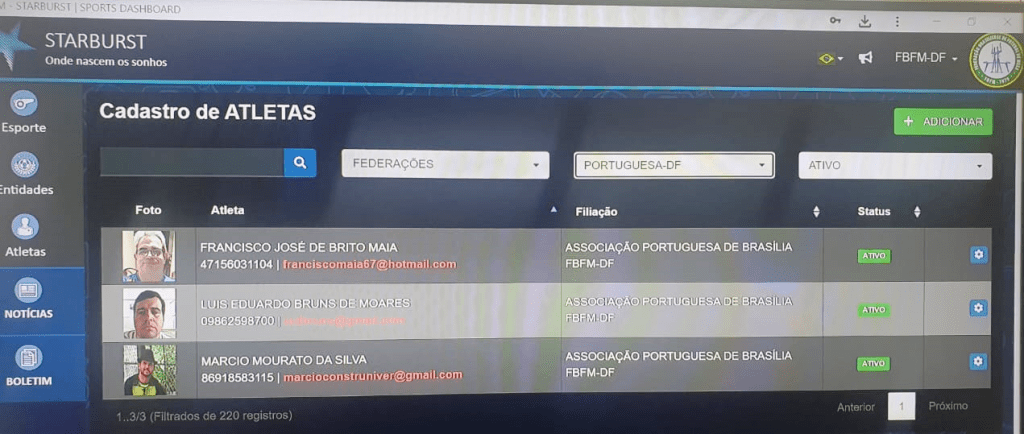 PORTUGUESA/DF – 3 ATLETAS