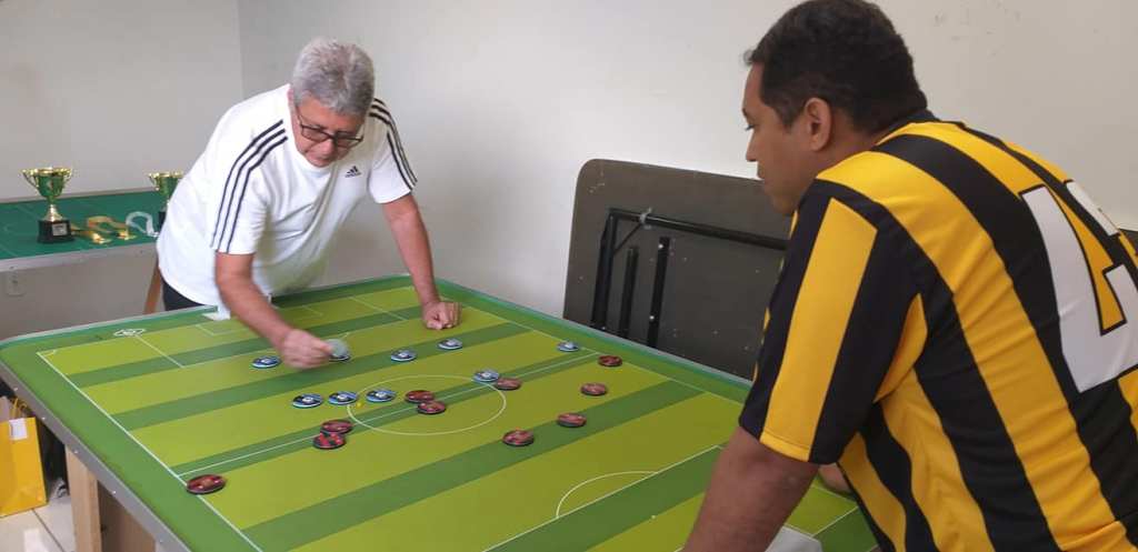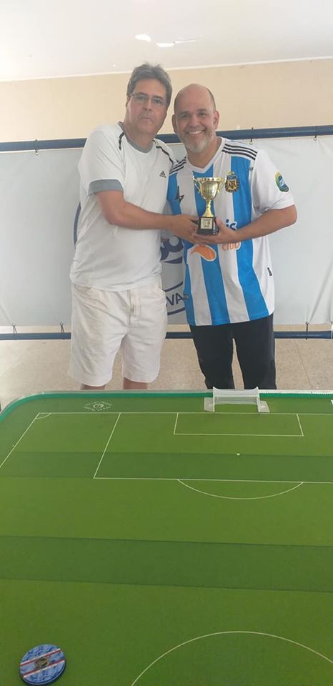 E aconteceu, na manhã do dia 29/04, na sala da FBFM, o VIII Torneio de Aspirantes. Foi uma disputa em formato de pontos corridos, em turno e returno. Clebio, atleta da ASCADE, comandou as ações até a última rodada, com 18 pontos, enfrentando o atleta da Portuguesa, Airton, com 16 pontos, em segundo lugar. Bastava um empate para Clebio levantar o caneco, mas Airton veio com tudo e venceu por 4×0, passando o atleta da ASCADE por um ponto. Agradecemos a participação de cada atleta pelo fair play e disposição. Final do VIII Torneio de Apirantes: 1- Airton – 19 pts (campeão);2- Clebio – 18 pts;3- Luzimar – 13 pts;4- Leo – 11 pts;5- Alex – 11 pts;6- Scalabrin – 9 pts