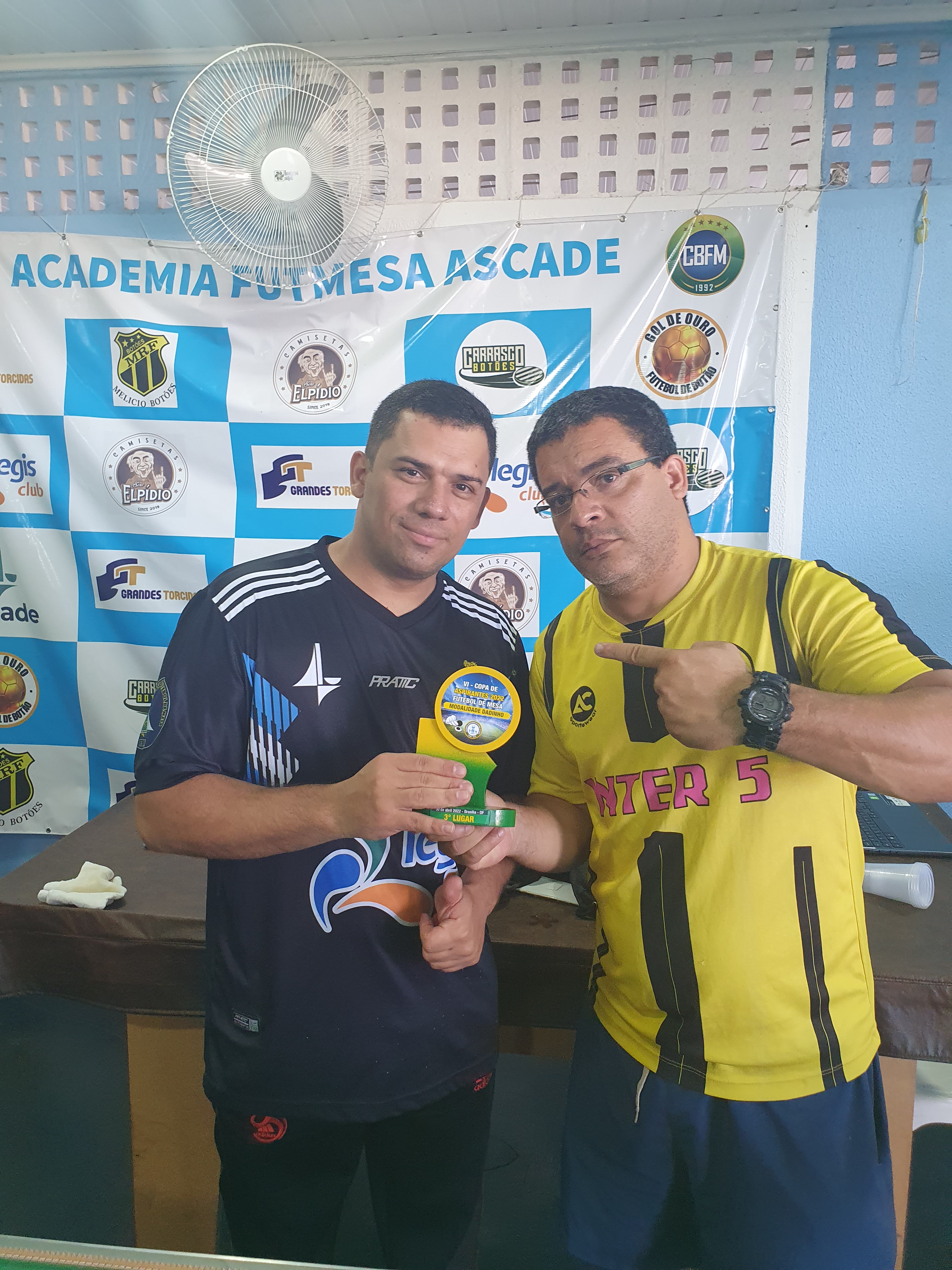 Neste sabado, 12/11, na sede da AABB, 09 atletas disputavam o titulo da 7a Edicao da Copa Brasilia de Aspirantes Dadinho. Na 1a fase era todos contra todos e classificavam 4 pra ouro e 4 pra prata. Toni com 17 pontos, seguido de Milton com 14, Adolpho com 13 e Lucas com 11 foram os classificados. Toni* 1×1 Lucas; Milton* 1×0 Adolpho definiram os finalistas. Enquanto na prata Airton venceu 1×0 Campos e levou o caneco, Toni venceu Milton por 2×1 e conquistou o titulo. Parabens Toni. Agradecemos a todos os atletas e a AABB pela parceria de sempre .