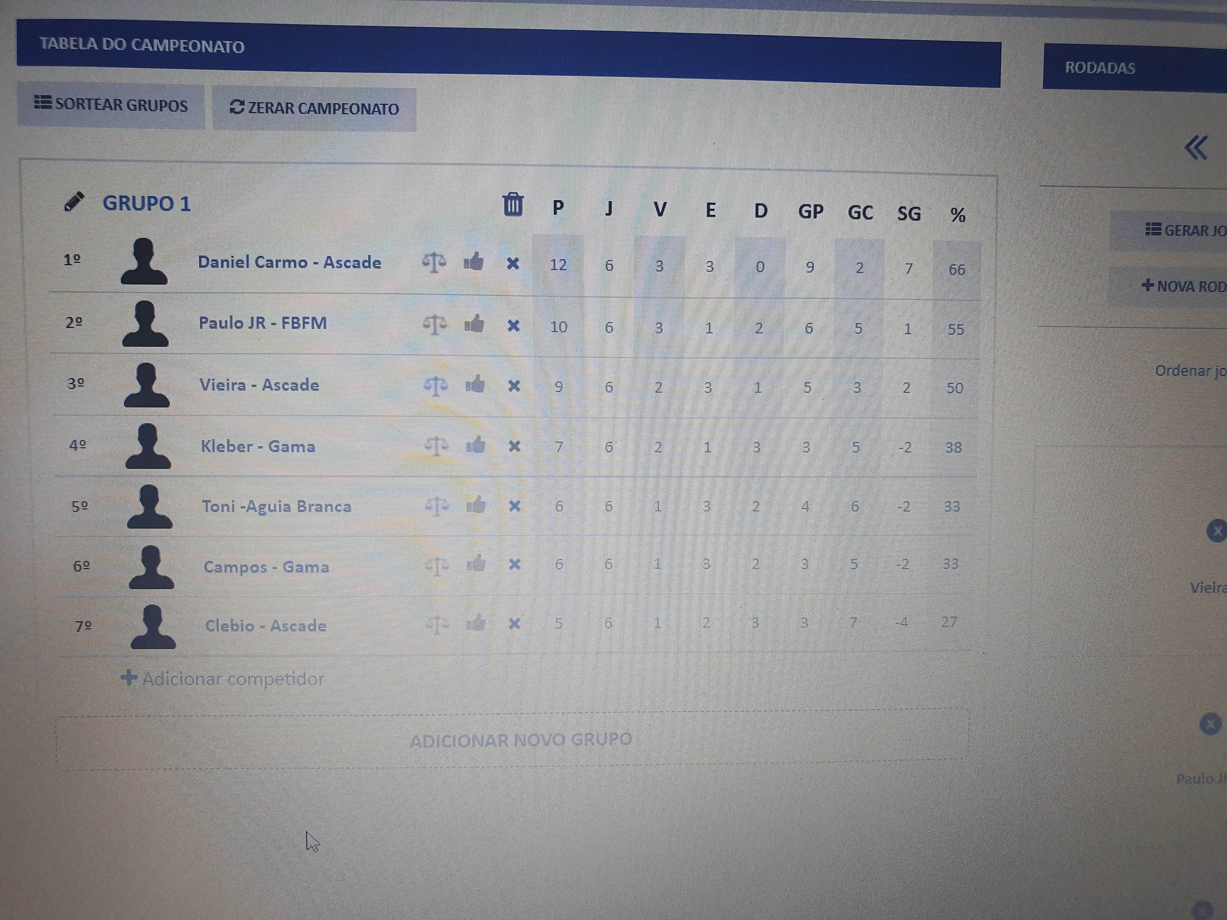 Toni 6, Clébio 6 e Campos 5 ficaram na Prata. Na final da Prata, Toni 1×1 Clébio deu o titulo para Toni do Águia Branca. Na ouro, Daniel 1×1 Kleber e Paulo 0x0 Vieira classificaram Daniel e Paulo pra grande final. Na ultima fase, enquanto Vieira conquistava o 3° lugar com 1×0 sobre Kleber, Daniel venceu por 2×0 e levou o caneco !! Parabéns !! Agradecemos Ascade pela recepção e agradecemos a todos os atletas pela harmonia e fair play.