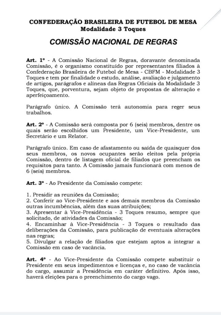 COMISSAO NACIONAL DE REGRAS DA MODALIDADE 3 TOQUES