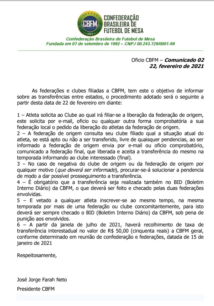 Oficio CBFM 01/2022 – Sobre Transferencias