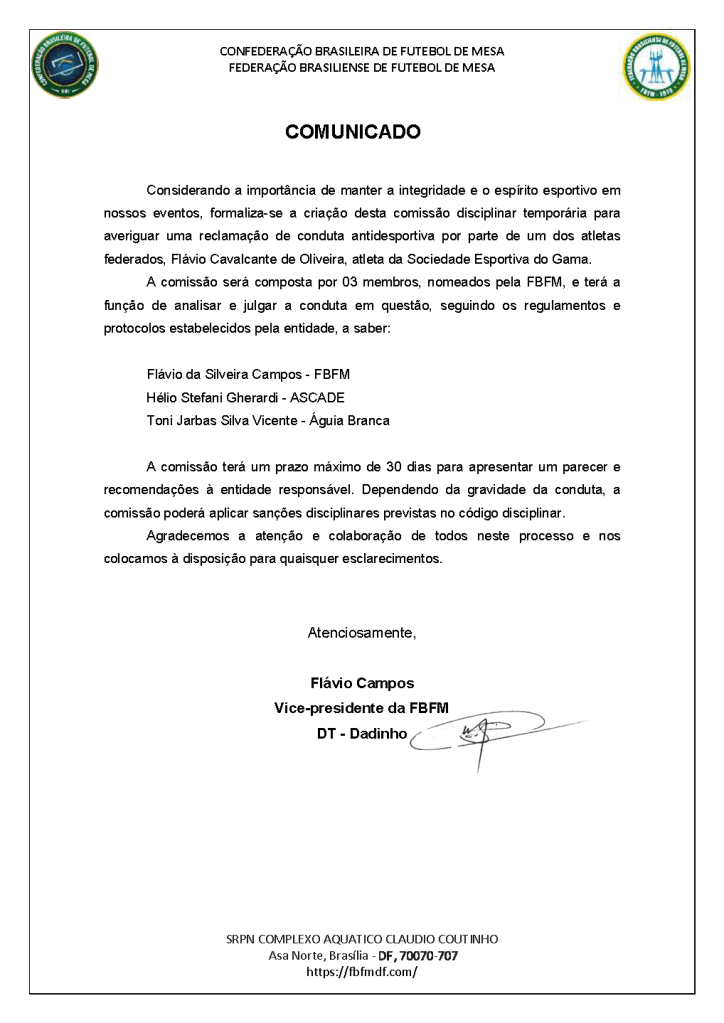 Denunciado: Flávio Cavalcante de Oliveira (Sociedade Esportiva do Gama)