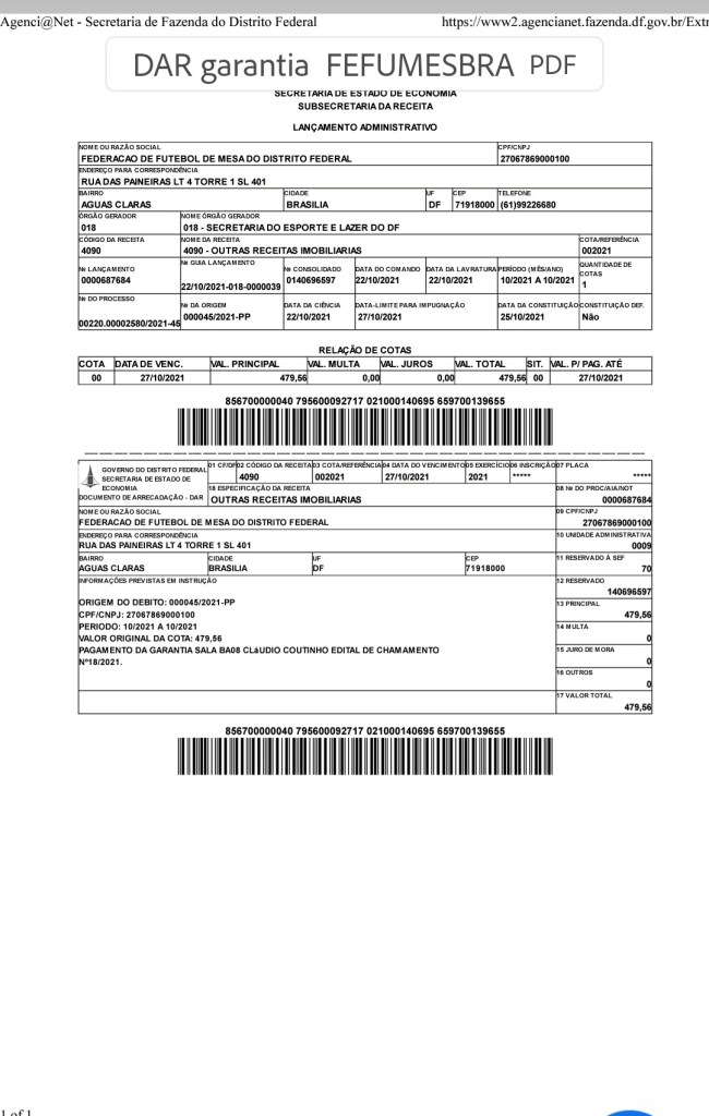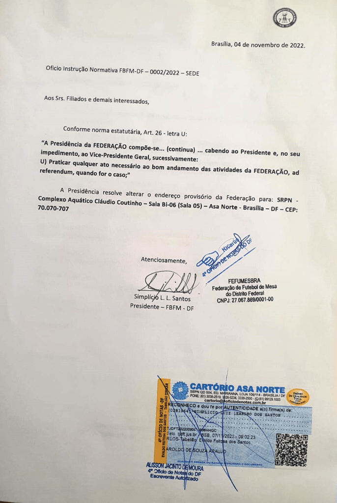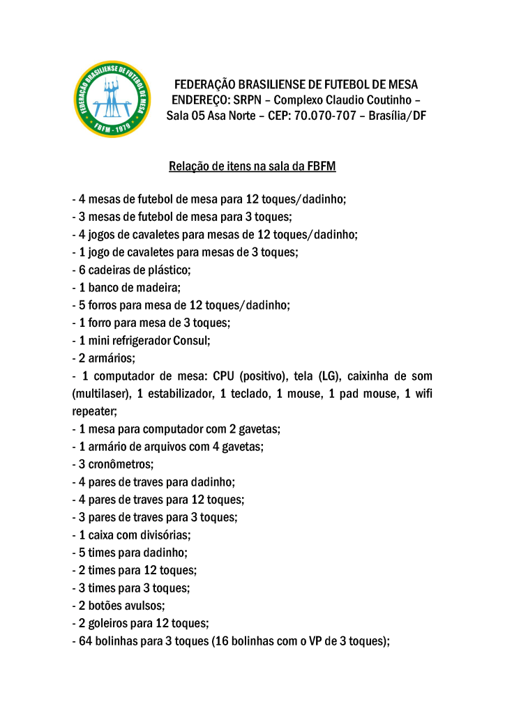 LOCALIZAÇÃO: SRPN – COMPLEXO AQUATICO CLÁUDIO COUTINHO, SALA 05, ASA NORTE – BRASÍLIA – DF – CEP: 70.070-707
