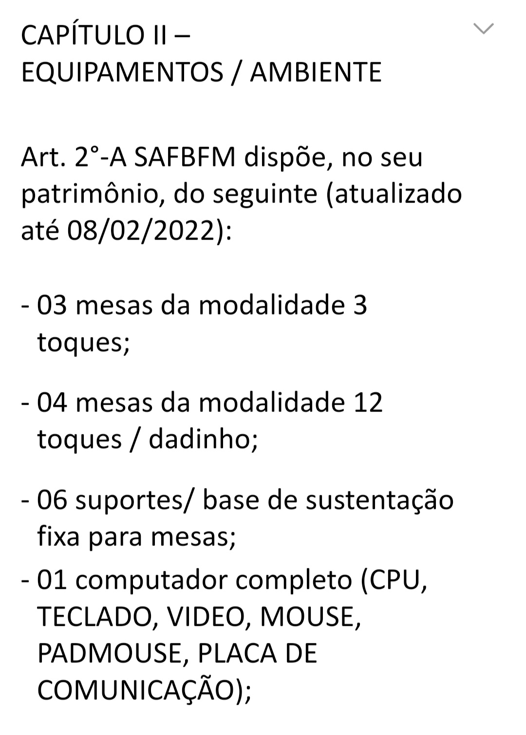 RELAÇÃO DE UTENSÍLIOS – PATRIMONIO CONTABILIZADO DA FBFM – 15/02/2023